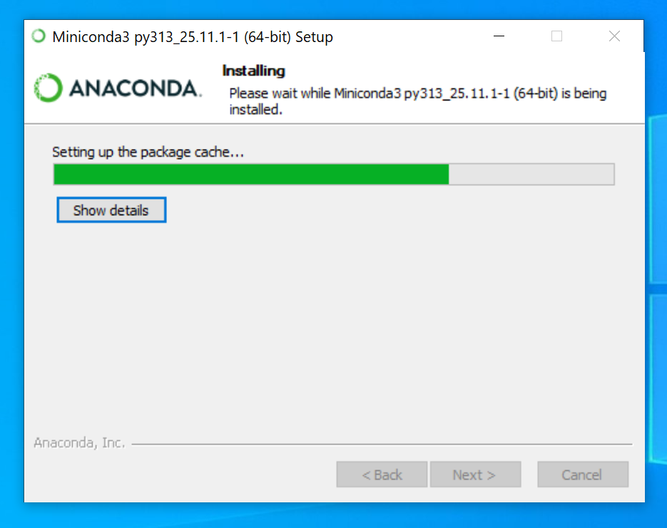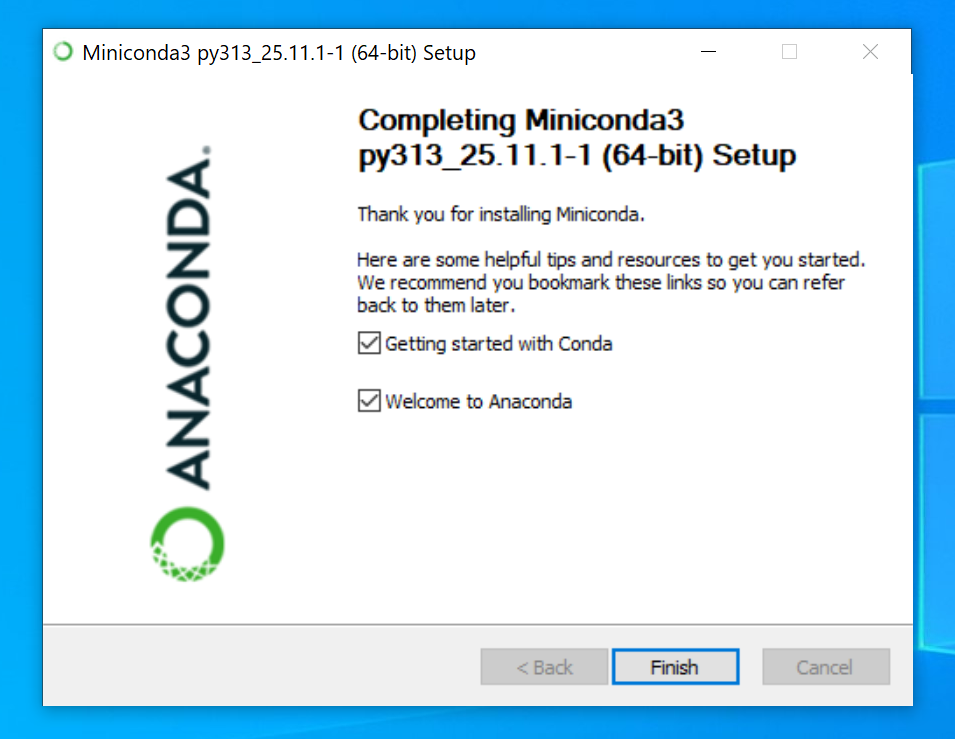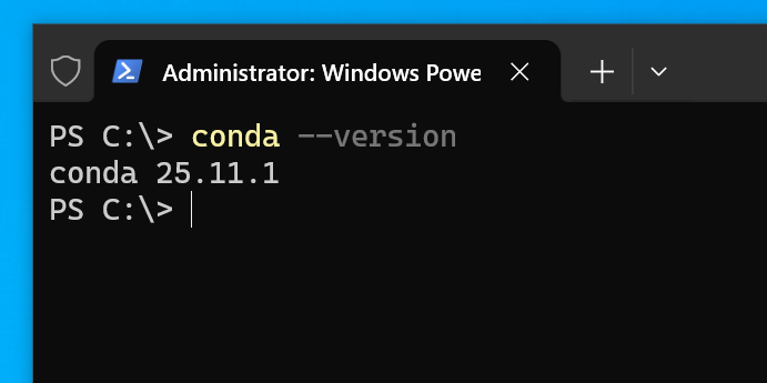 conda --versionIf everything goes well, you should see the following output, so the name conda and the currently installed version (in this case, conda 25.11.1)